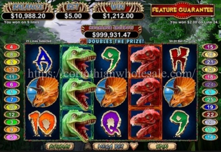 Setiap kali Megasaur muncul, ia bisa meluas menutupi satu reel penuh, bahkan bisa menambahkan pengganda hingga 5x.